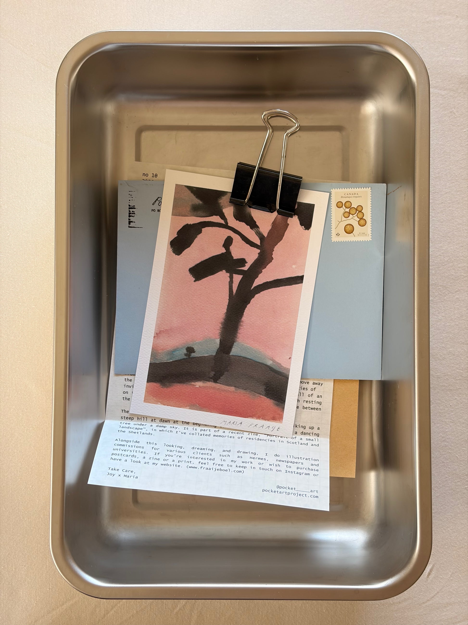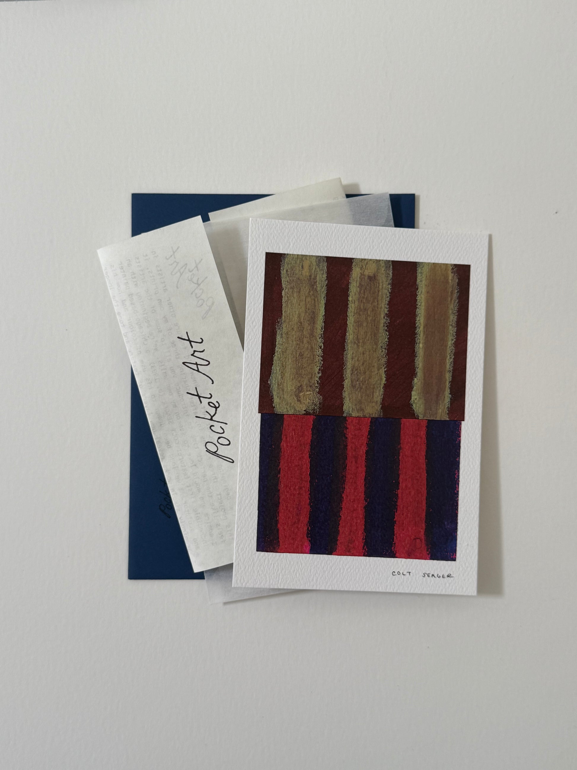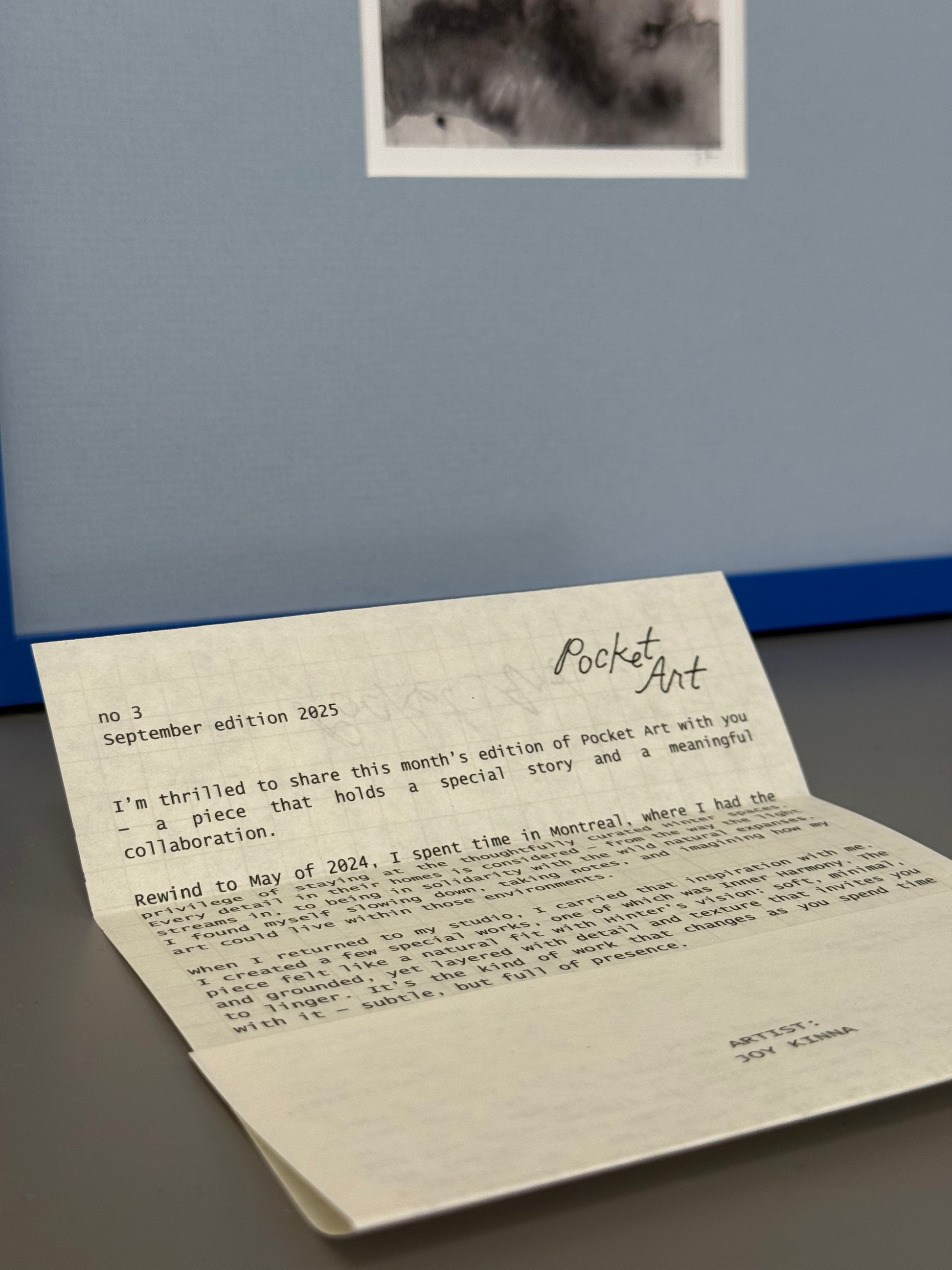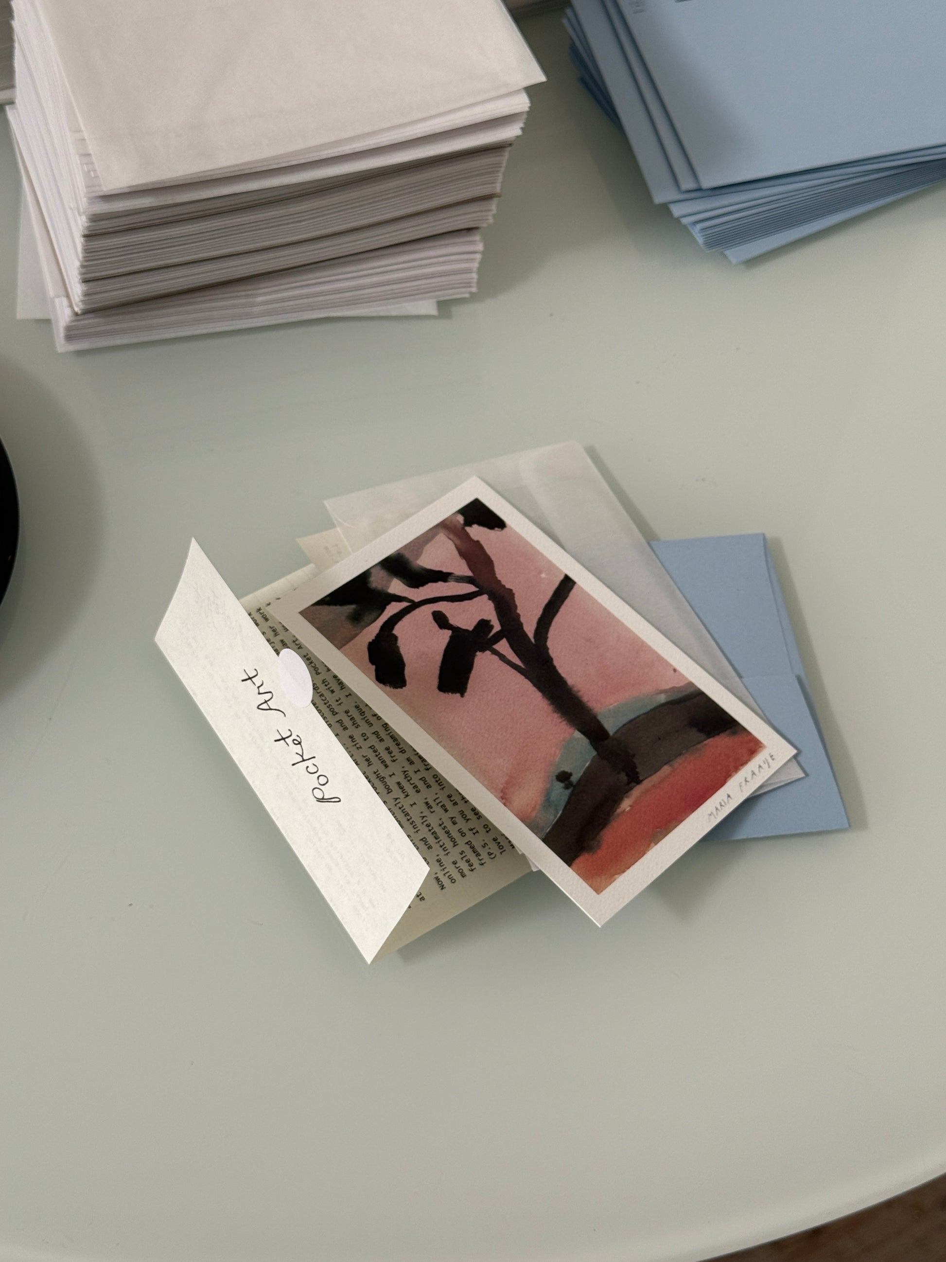 Pocket Art is a unique way to build a personal art collection—one print at a time. Each month, you’ll receive a small, limited-edition art print, signed by the artist and printed on premium paper. Alongside is a personal note from the artist, offering insight into the piece’s inspiration and process.